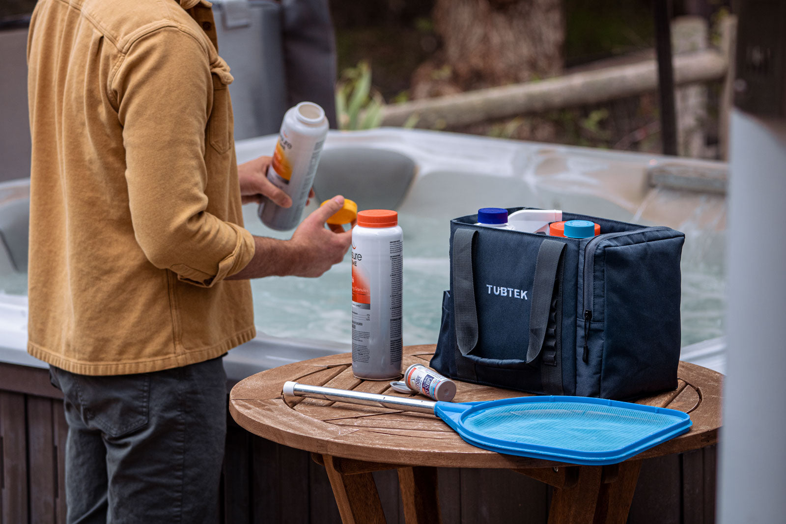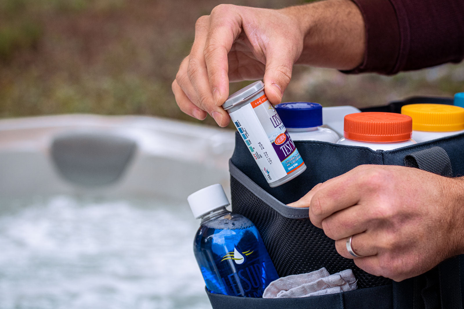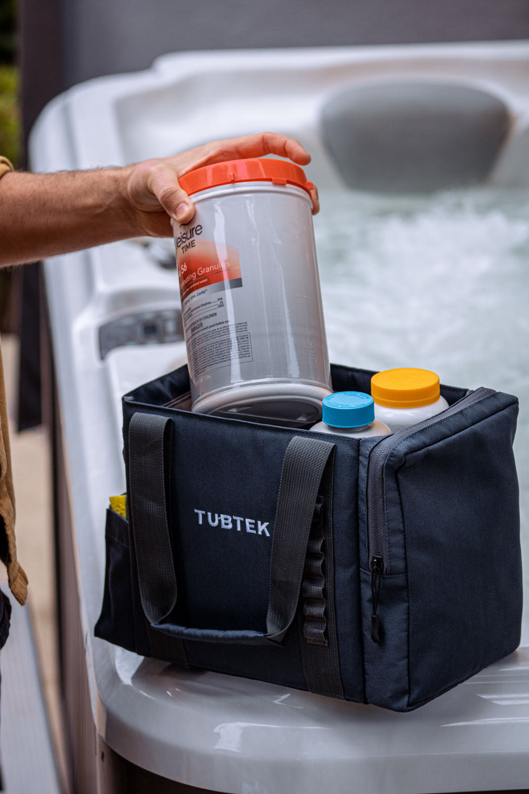 The ChemBag is designed to hold everything you need to keep your hot tub clean. Save time and energy by always having the essentials right at your fingertips.